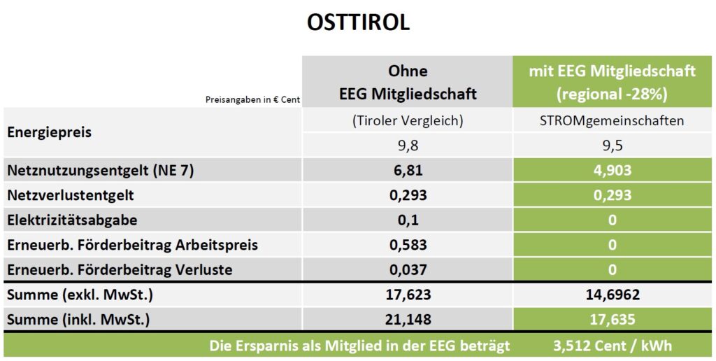 Ersparnis für EEG Mitglieder